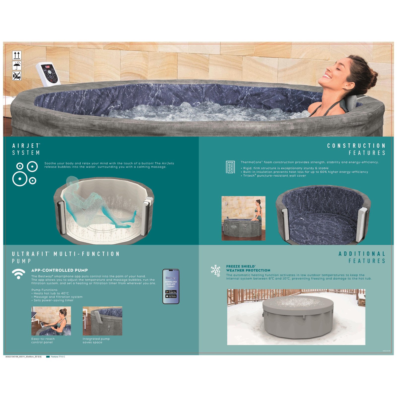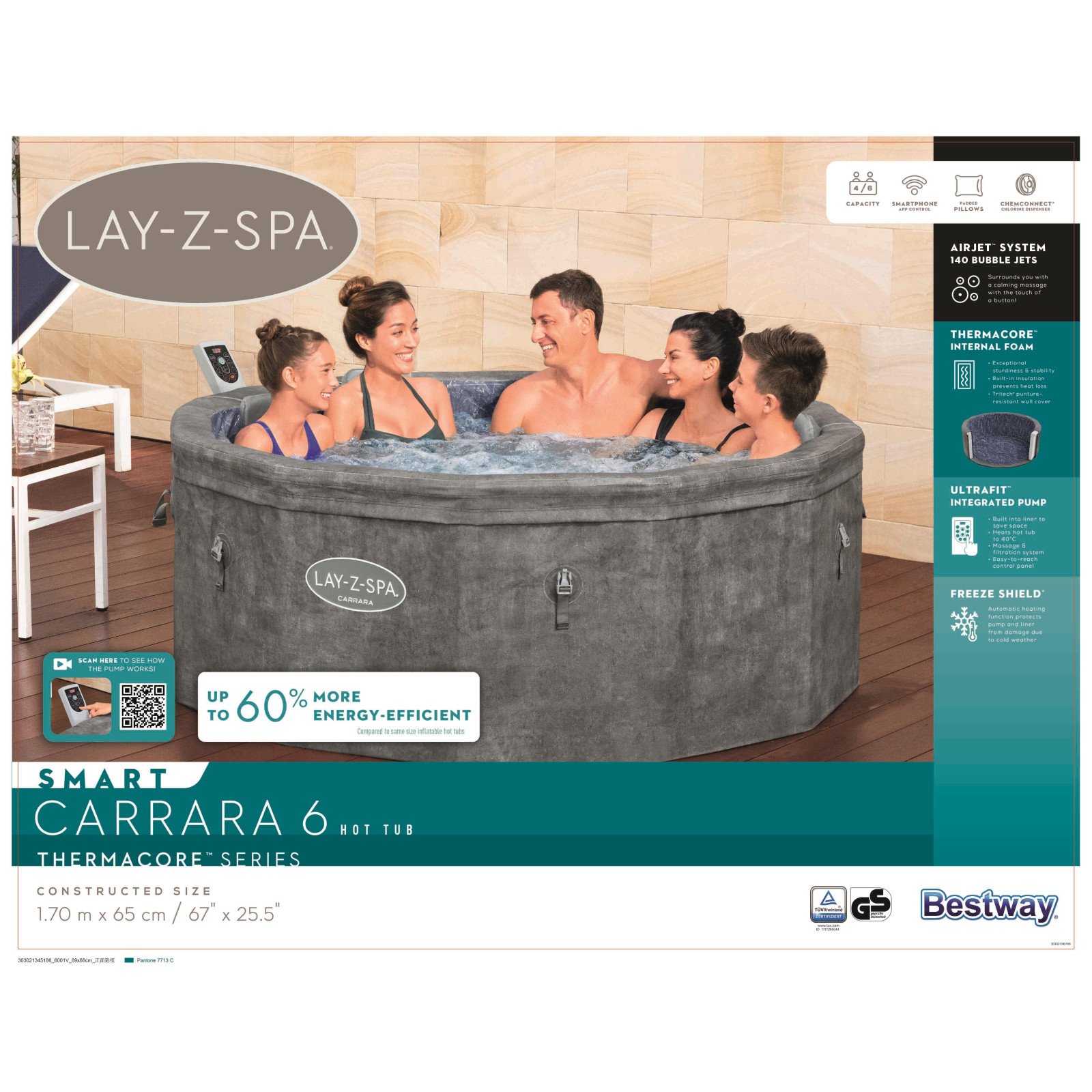 - Lay-Z-Spa 1.70m x 65cm Carrara ThermaCore UltraFit Smart AirJet 6 Grey Stone Round 6001V