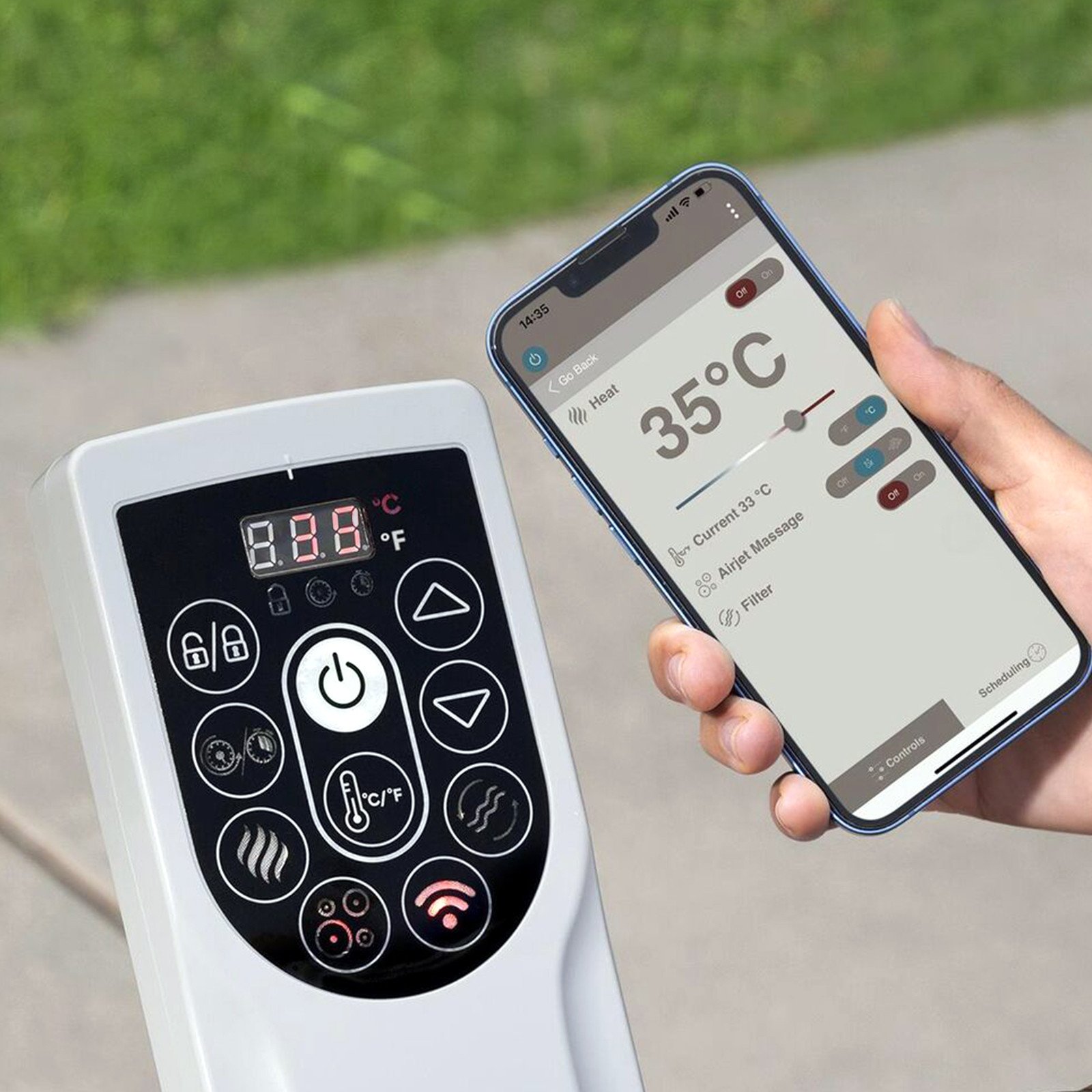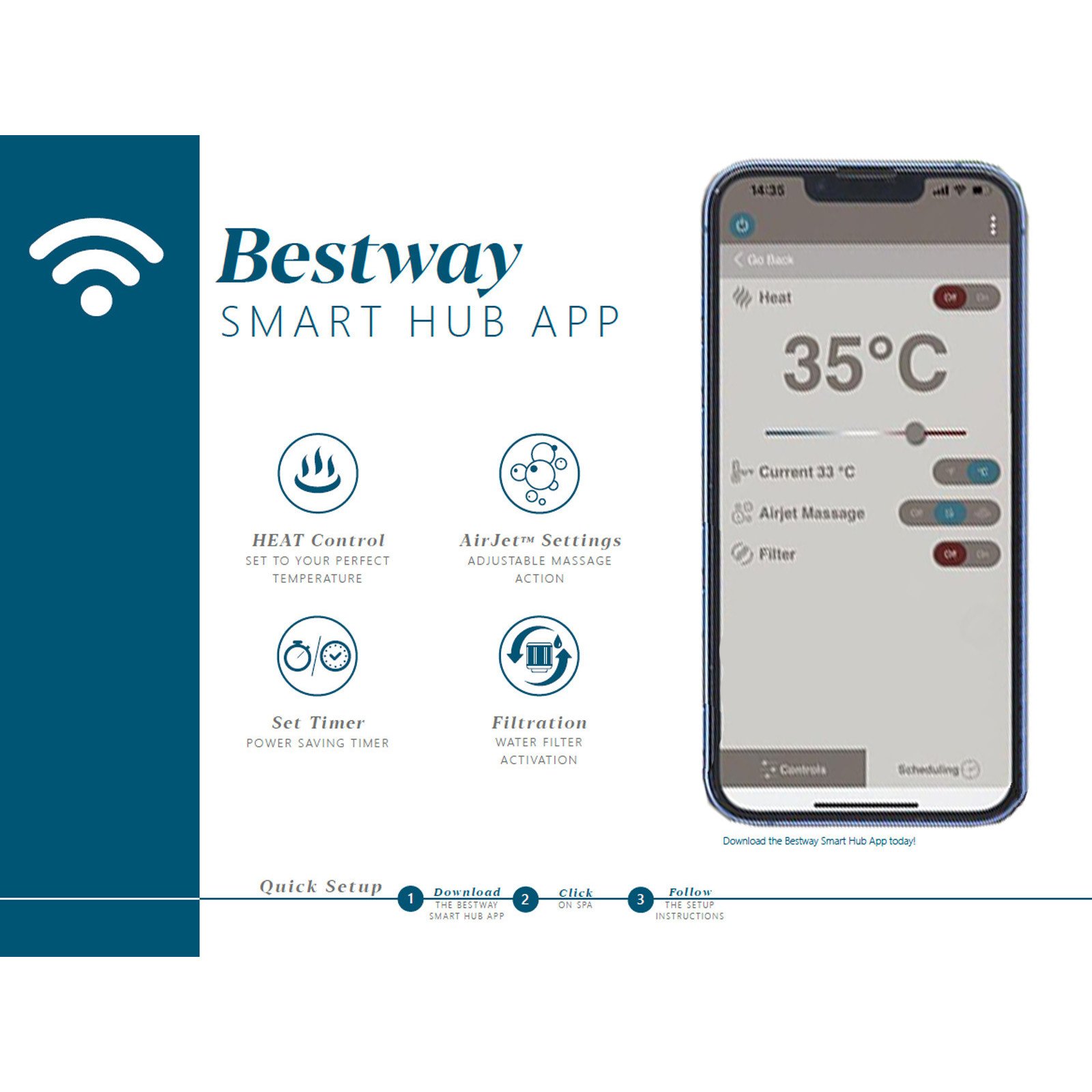 - Pumpe med WiFi. Last ned Bestway Smart Hub-appen til telefonen og kontroller spaet ditt fra hvor som helst i verden! Pumpeenheten må være koblet til din WiFi-ruter.