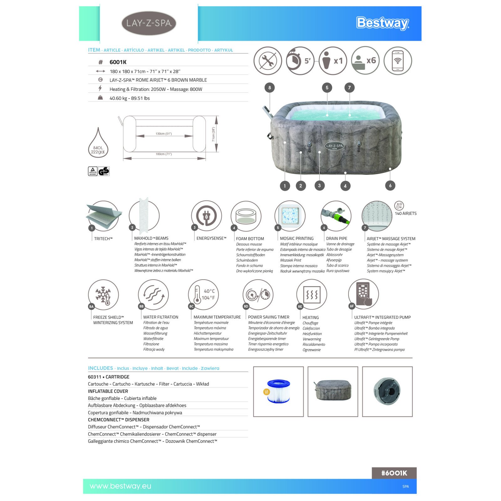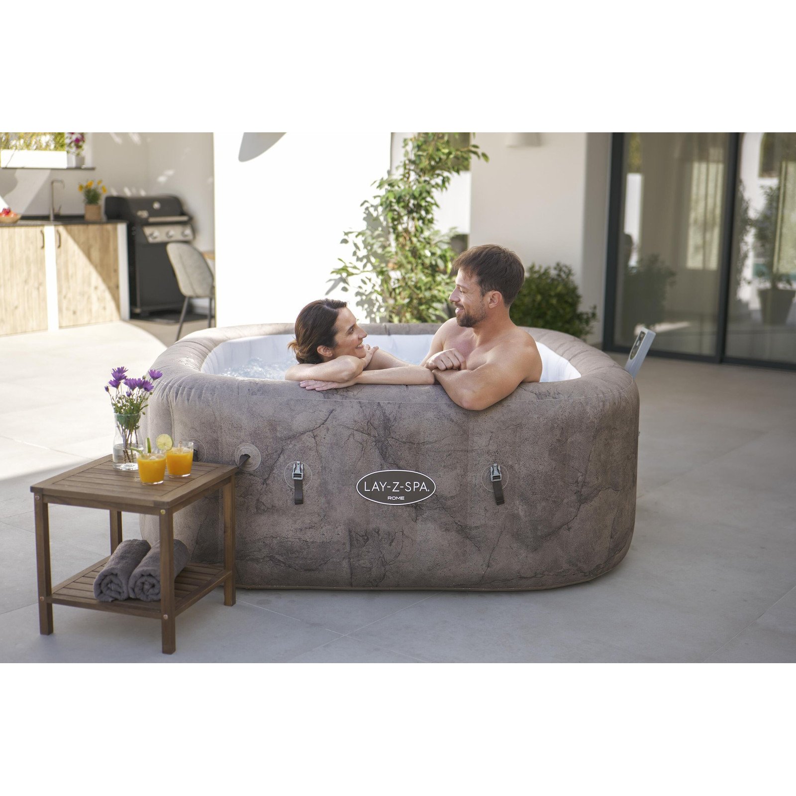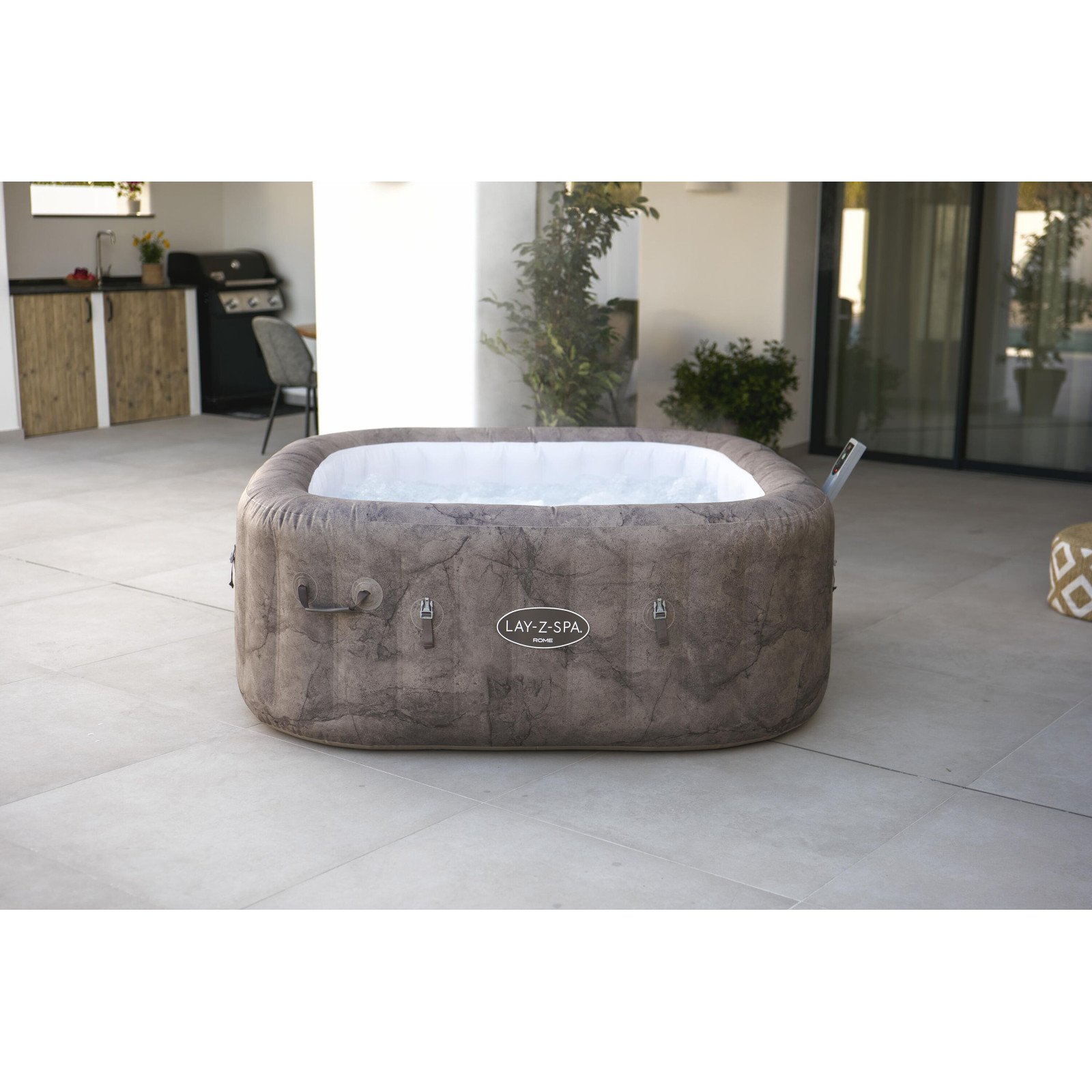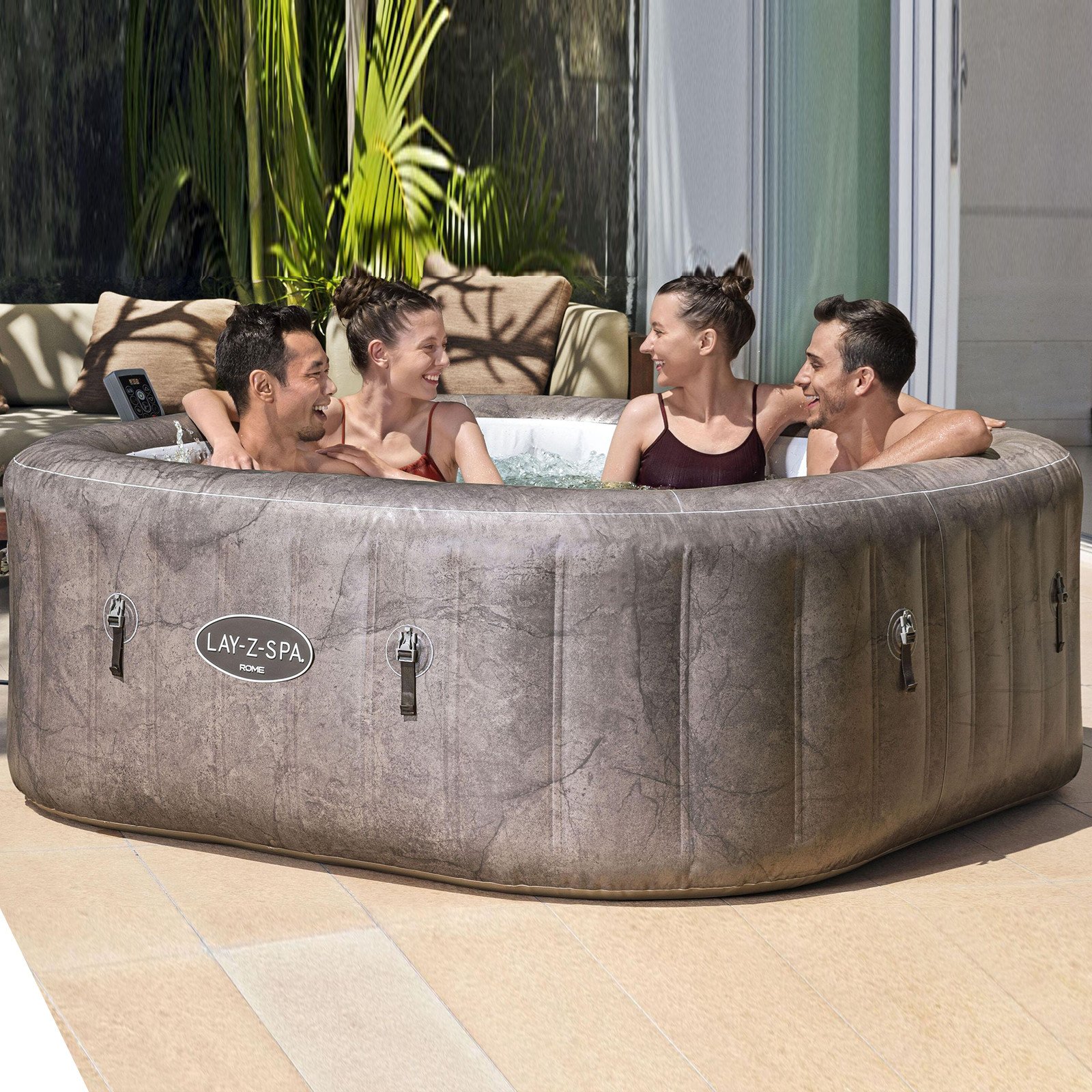 - Lay-Z-Spa 1.80mx1.80mx71cm Rome MaxHold EnergySense UltraFit Smart AirJet 6 Brown Marble Square 6001K
