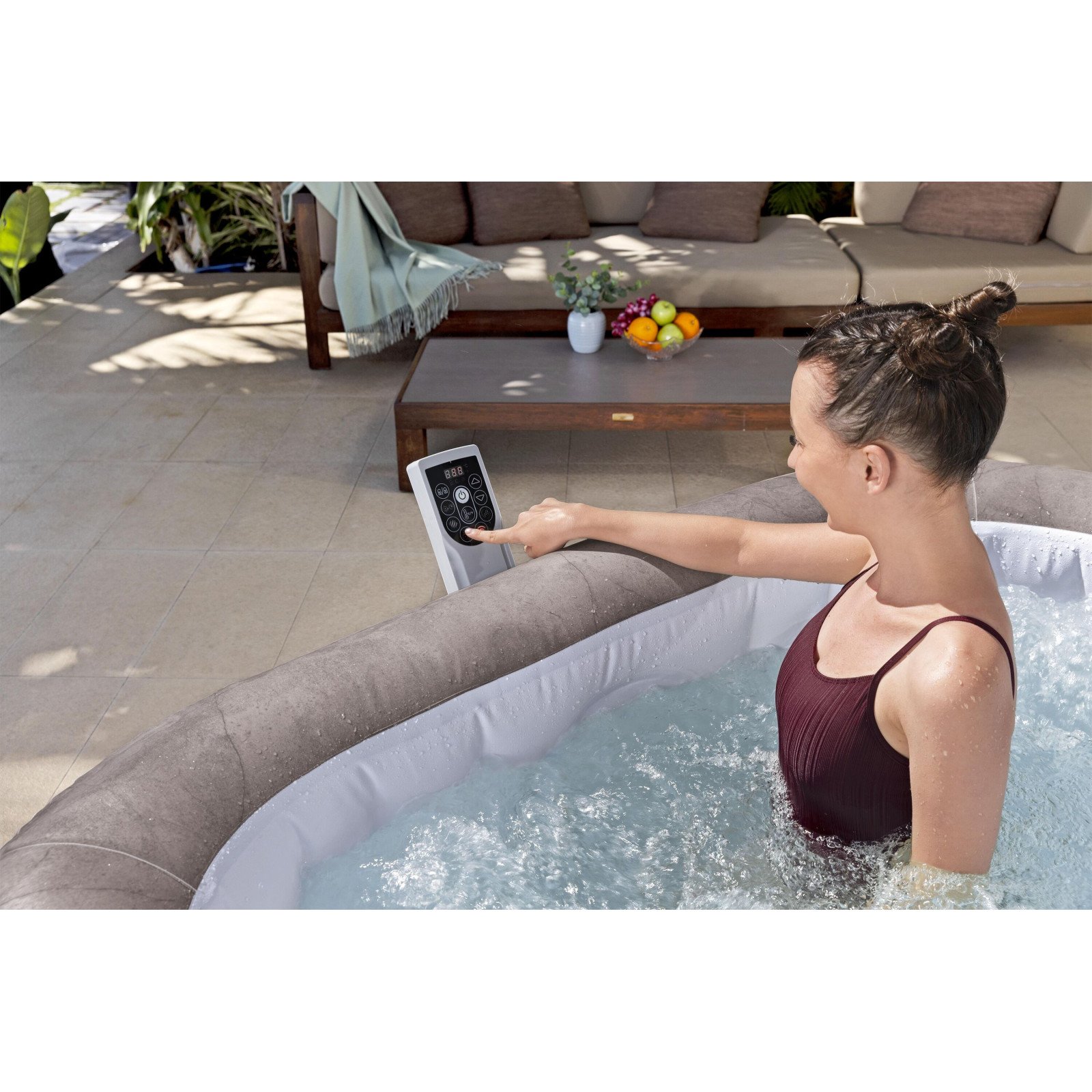 - Oppblåsbart boblebad for 4 til 6 personer.