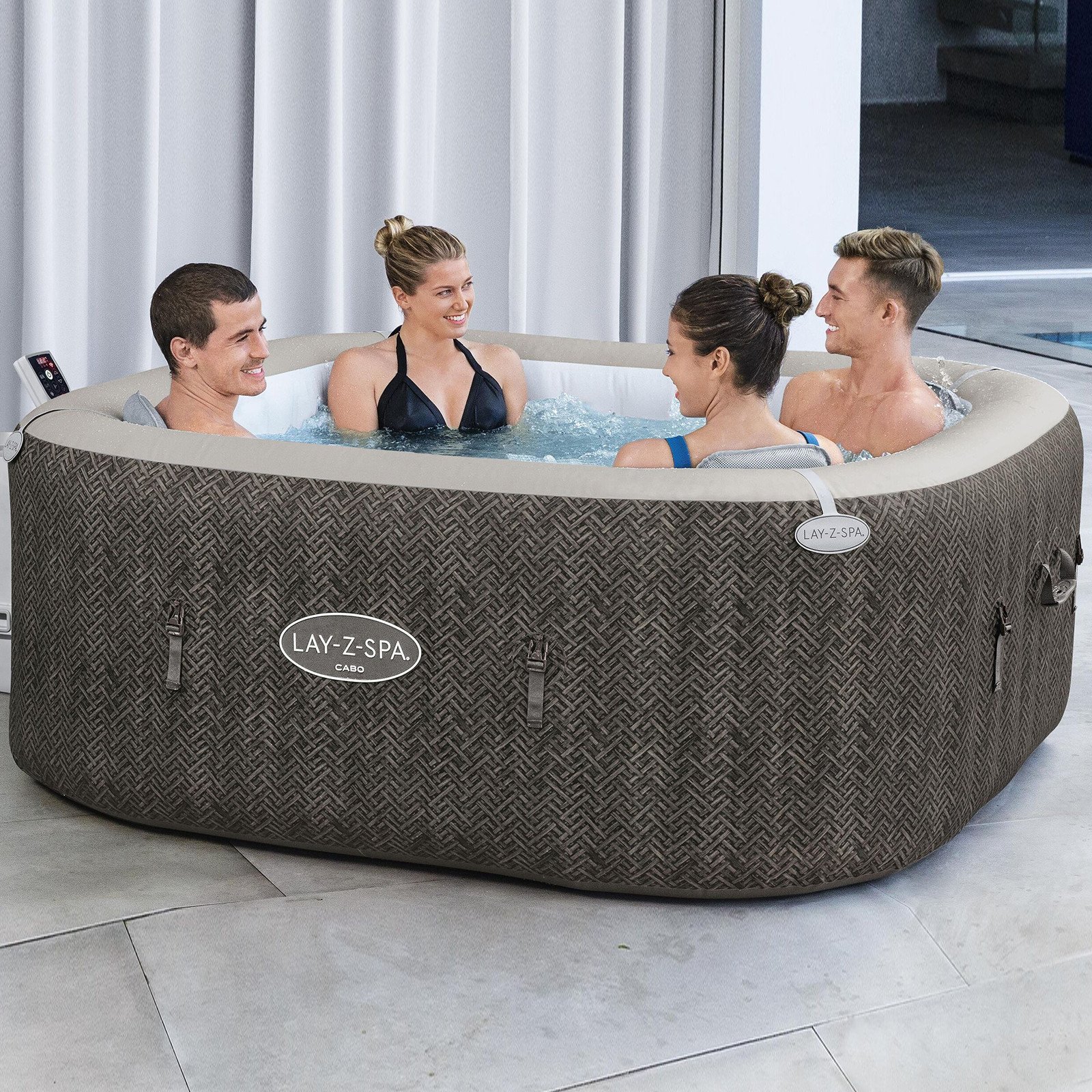 Lay-Z-Spa Cabo HydroJet Oppblåsbar Spa med boble og vannstrålemassasje! Sett opp ditt eget utendørs massasjebad på 10 minutter! Nyt deilig varmt vann med Lay-Z-Spa massasje du også!