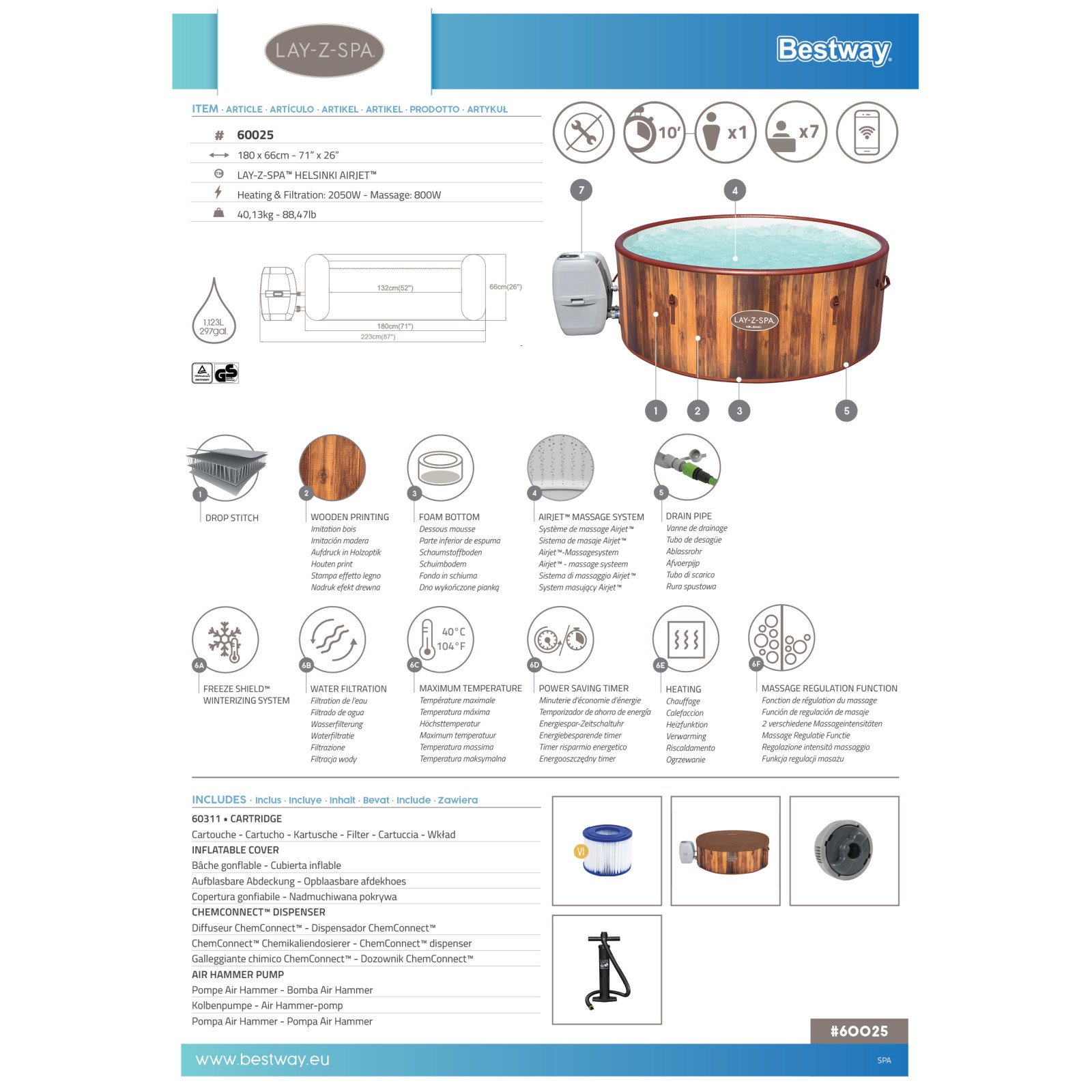 Massasjebadet er produsert av Bestway som er verdens største produsent av oppblåsbare massasjebad. De har også lang erfaring av produksjon av oppblåsbare båter og annet som krever tøff behandling. Vi er meget sikre på kvaliteten slik at vi gir deg 2 års garanti! Flere andre opererer med 1 år eller 6 måneders garanti. Trenger du hjelp ringer du vårt topp trente Lay-Z-Spa serviceteam.